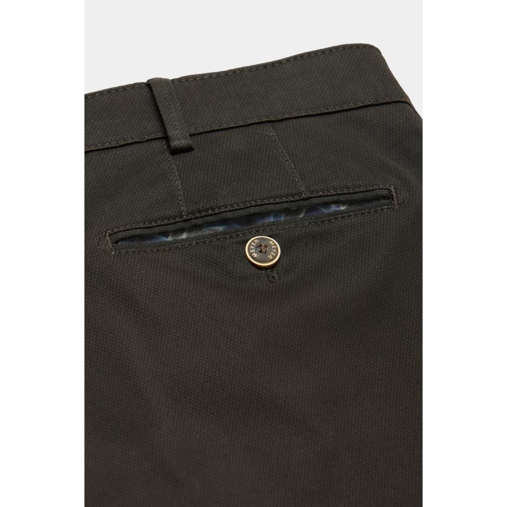 Stijl en comfort in één. Deze Bonn van Meyer is een chino met een verfijnd micro-dessin en een diepe donkerbruine kleur.