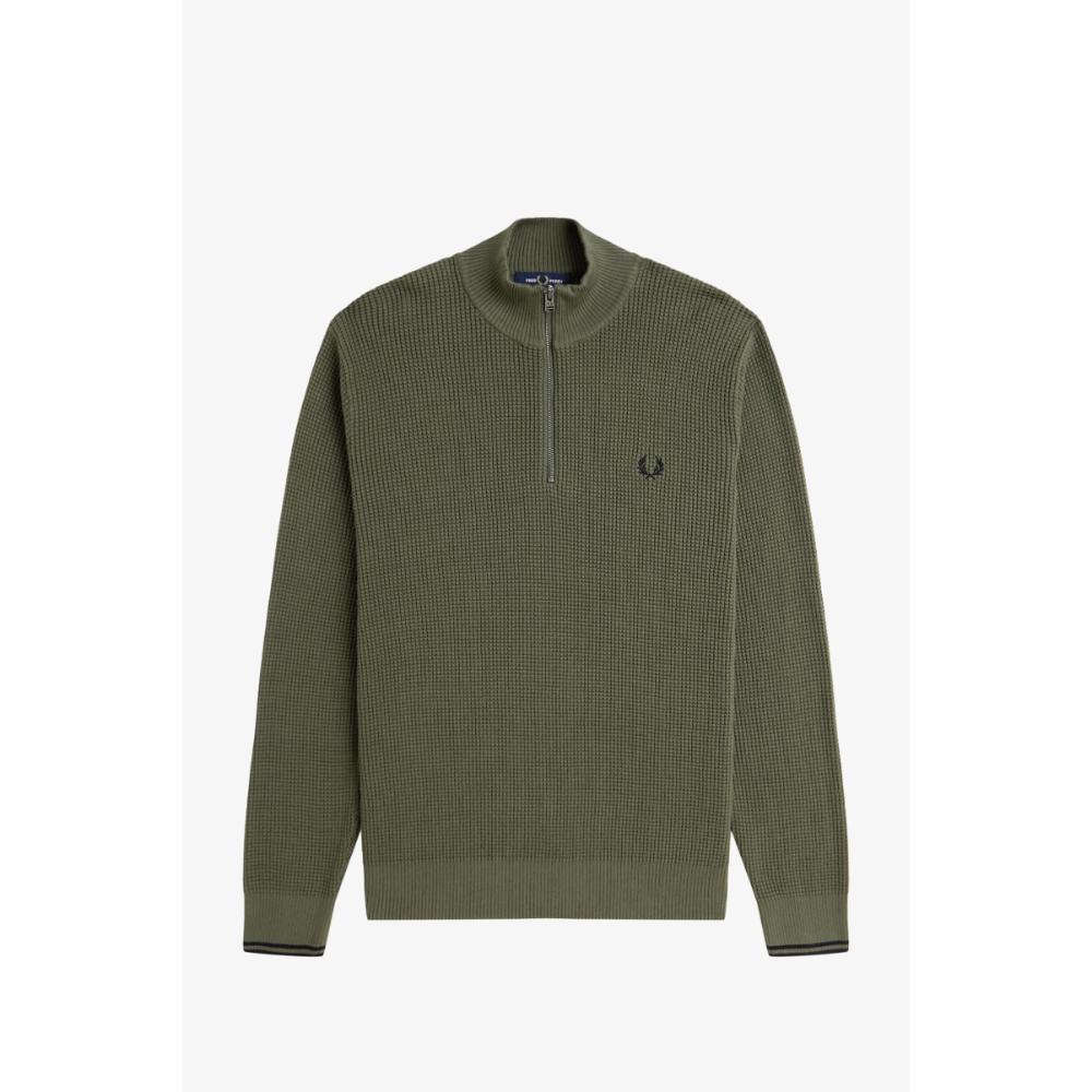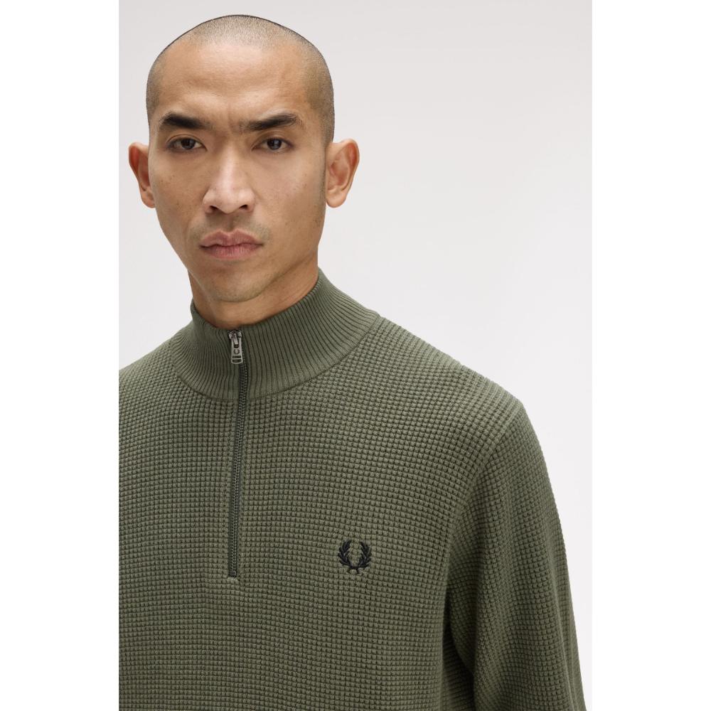 Deze half-zip half trui met wafelstructuur combineert comfort en originaliteit: trek de rits omhoog voor extra warmte of laat ‘m open voor een nonchalante vibe.