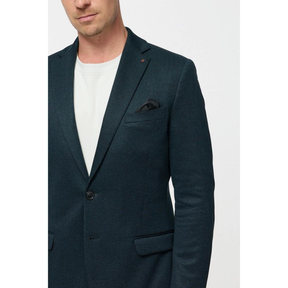 Een moderne allrounder die stijl en comfort naadloos combineert. Dit pak is samengesteld uit flexibele jersey-stof en komt in een diepe petrol tint. Er is ook een bijbehorende pantalon.